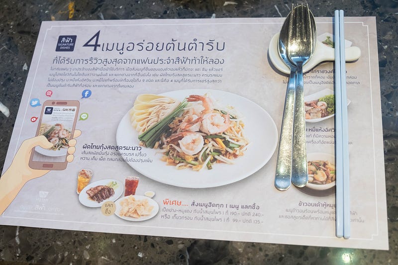 เมนูต้นตำรับความอร่อยของร้านสีฟ้า จะมี 4 เมนูค่ะ ได้แก่ ผัดไทยกุ้งสดสูตรมะนาว บะหมี่แห้งอัศวิน ข้าวอบเต้าหู้หมูแดง และข้าวหน้าไก่ราชวงศ์ไข่ดาว วันนี้พิกุลจะพามาชิม 3 เมนูสุดอร่อย พิเศษด้วยอีกหลายหลายเมนูแนะนำที่ควรมาลองทานที่ร้านสีฟ้าค่ะ จะมีอะไรบ้างมาดูกันเลยดีกว่า!
