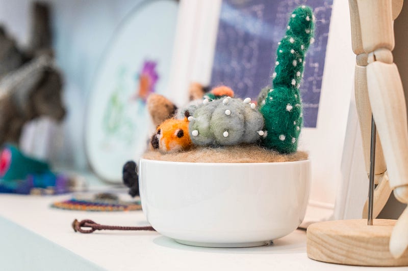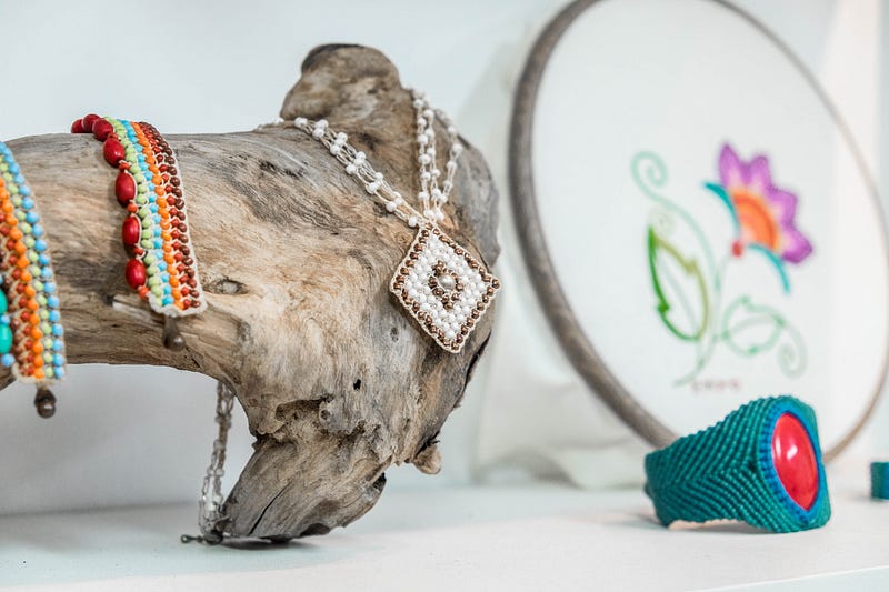 ผลงานที่วางโชว์อยู่สวยๆ ทั้งนั้นเลยค่ะ มีหลากหลายแบบเลย บางอันเป็นการทอผ้า บางอันเป็นการปัก เครื่องประดับก็มี ดูๆ ไปก็เพลินดีค่ะ