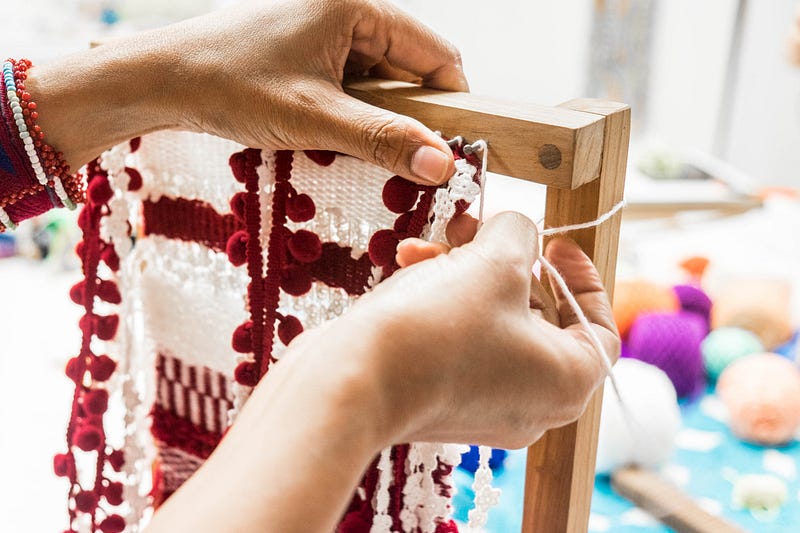 ค่อยๆ ทำไปทีละชั้น ช่วงแรกๆ ที่ทอผ้า มือสั่นมากๆ ค่ะ รู้สึกทำไม่ค่อยถูก จะหยิบจะจับอะไรก็งงๆ พอทำไปสักพักนึงก็ดีขึ้นค่ะ รู้สึกนิ่งขึ้น สงบขึ้น ทอต่อไปสบายมากเลยย