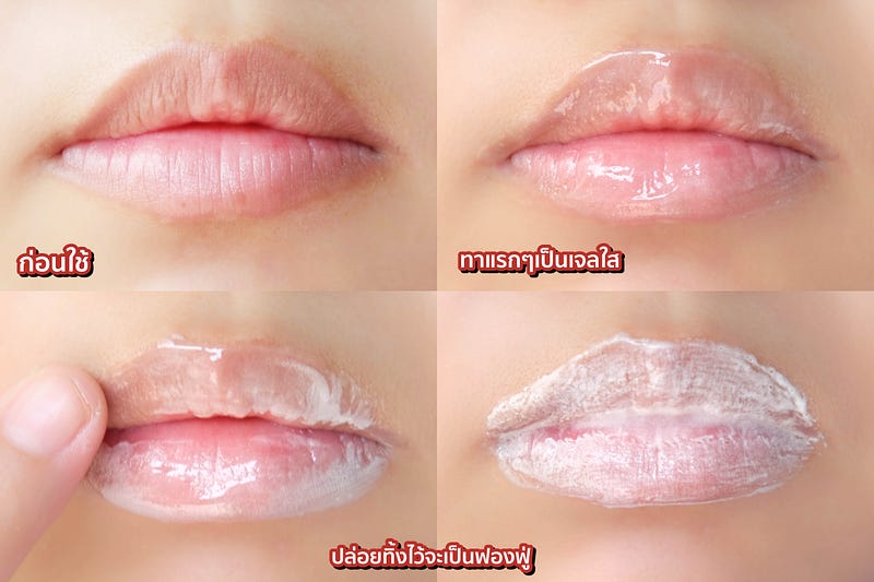 เนื้อสัมผัสของลิปมาส์กจะมีลักษณะเป็นเจลใสๆ สีชมพูอ่อนๆค่ะ ตอนอ่านรีวิวคนอื่นยอมรับว่างงนะคะ งงว่ามาส์กจะเปลี่ยนเป็นฟองฟู่สีขาวๆ ได้ยังไง ไม่เคยใช้ผลิตภัณฑ์แบบนี้เลยค่ะ อันนี้ครั้งแรกเลยค่ะ